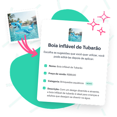 Com o PRIME, a inteligência artificial trabalha por você. Basta enviar a foto que a gente sugere nome, preço e descrição na hora. É só confirmar e pronto!